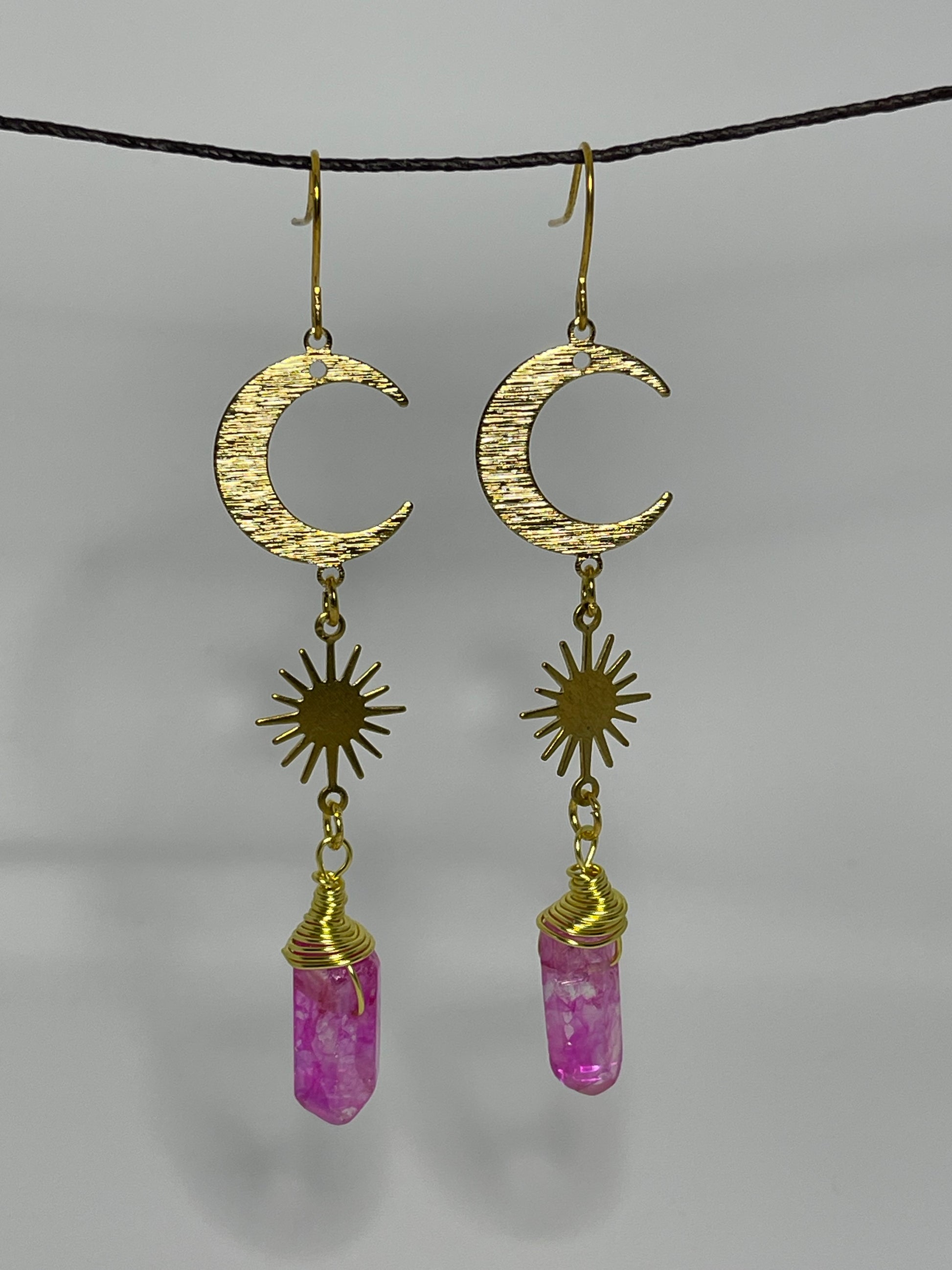 Pink Celestial Quartz Drop Earrings